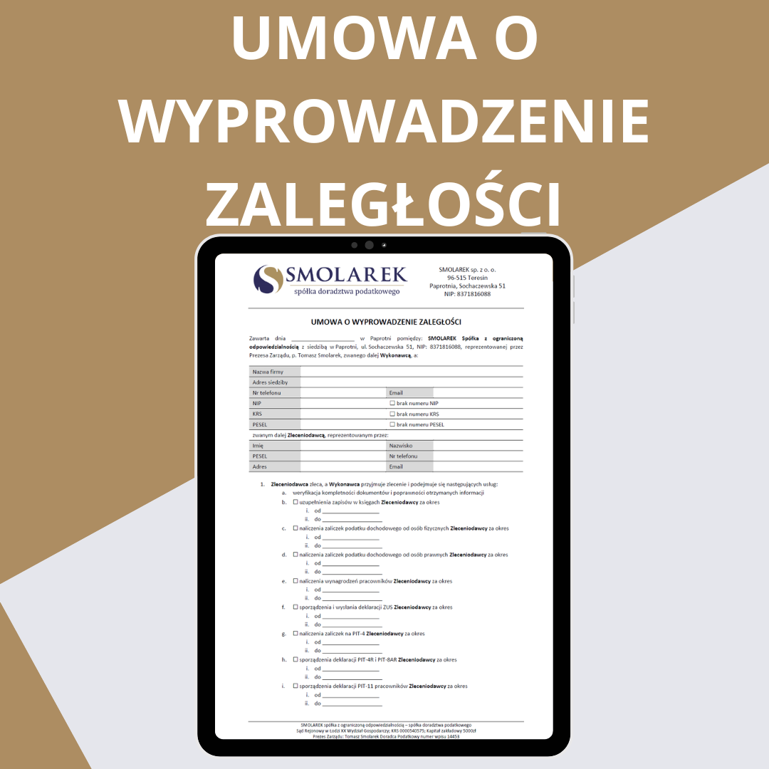 Umowa o wyprowadzenie zaległości. W umowie znajdują się zapisy dotyczące: